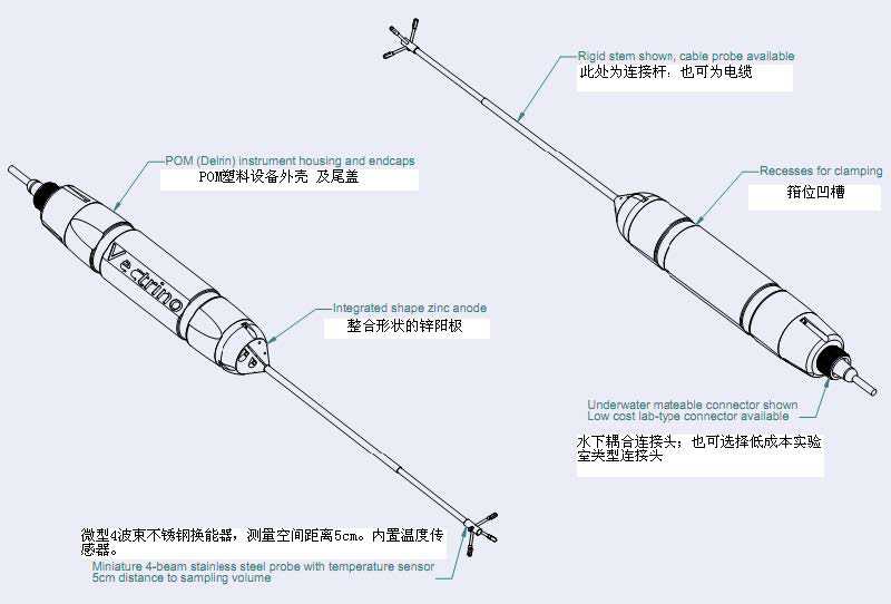 2、40cm 連接桿 4 波束下視探頭或者 1m 電纜連接的 4 波束探頭。