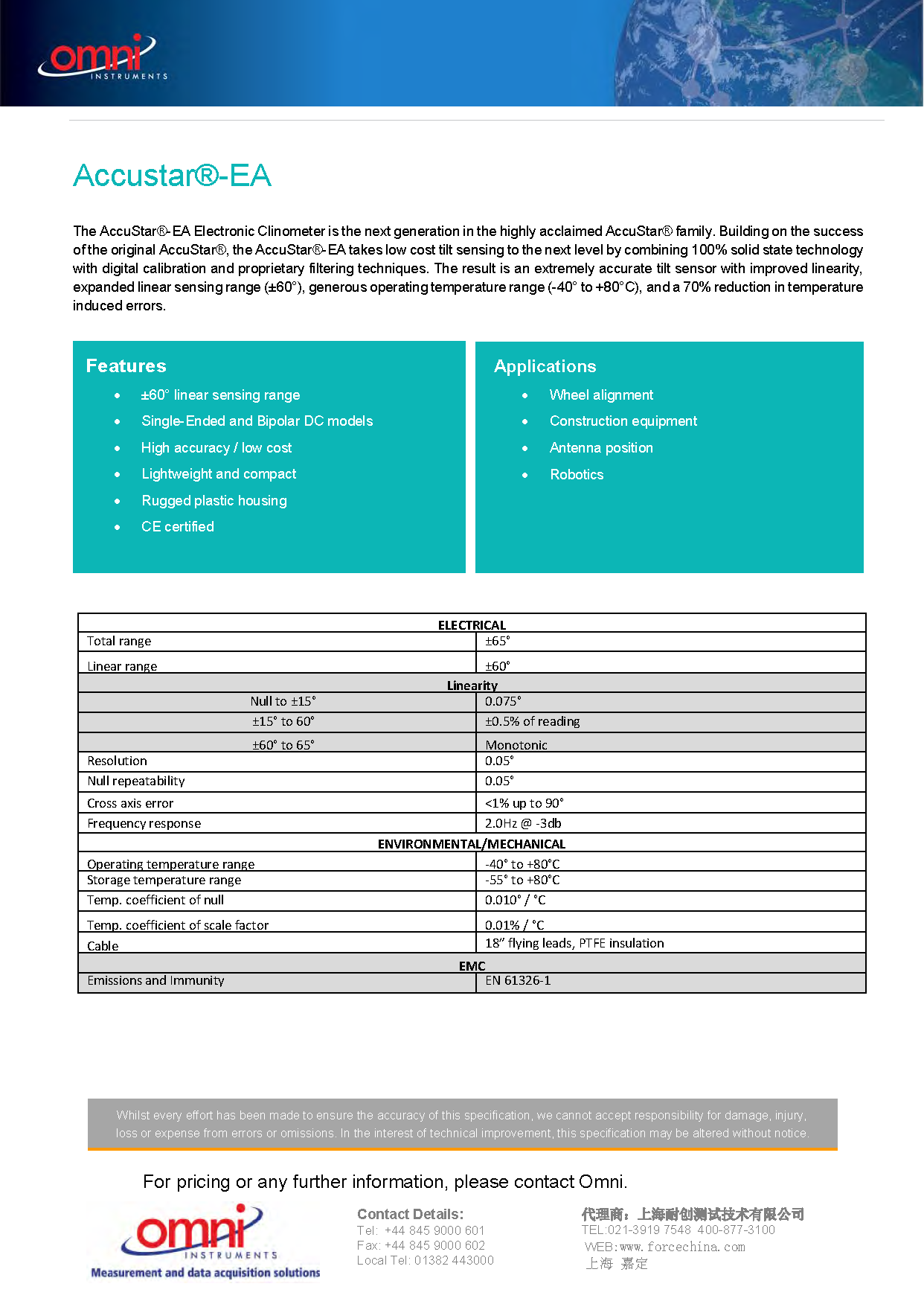 OMNI Accustar 傾角傳感器