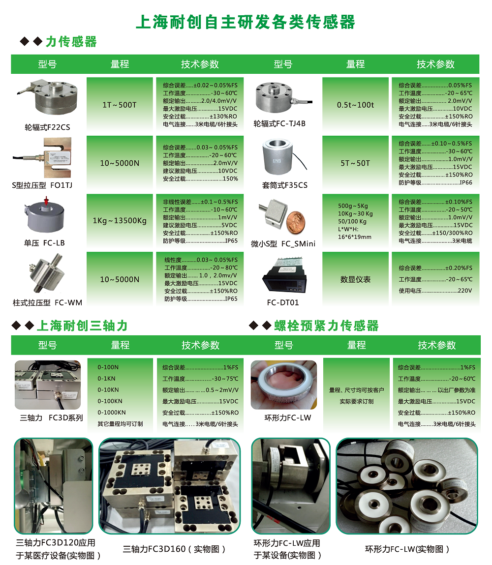 三軸力傳感器選型總表